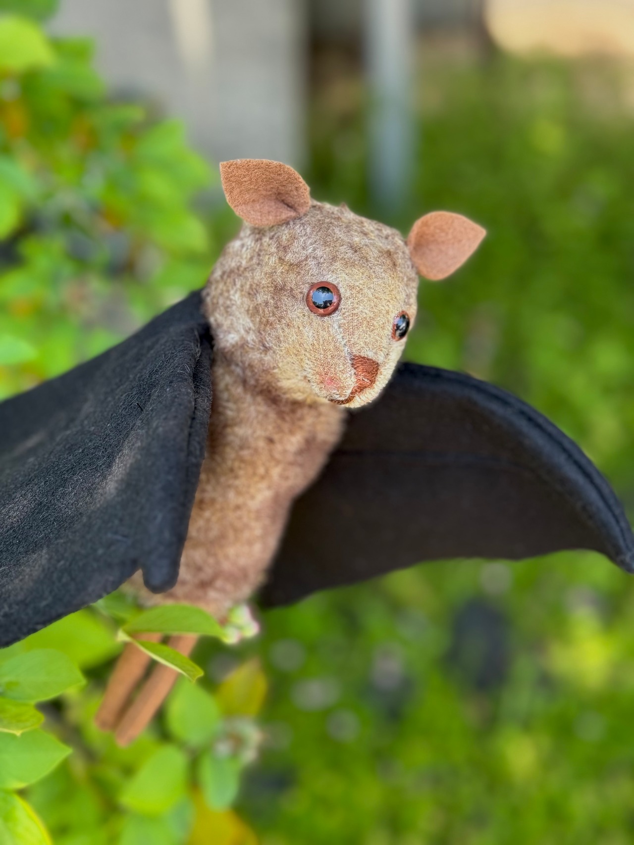 バーレーベン工房のパペットでは珍しい手のひらでパタパタ動かすタイプです。愛らしいお顔のコウモリです。