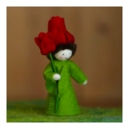 チューリップを抱き、頭にはお花のキャップをかぶった妖精です。