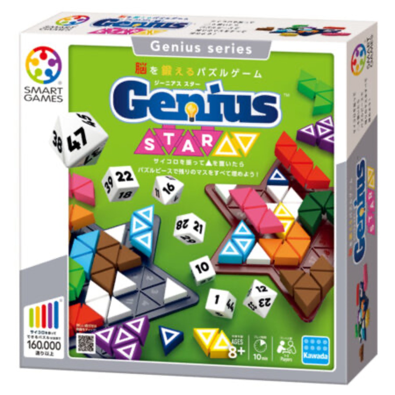 【セット内容】ボード×2、パズルピース×22(11色各2個)、ブロックピース×14、サイコロ×7(6面×4、8面×3)、遊び方説明書×1