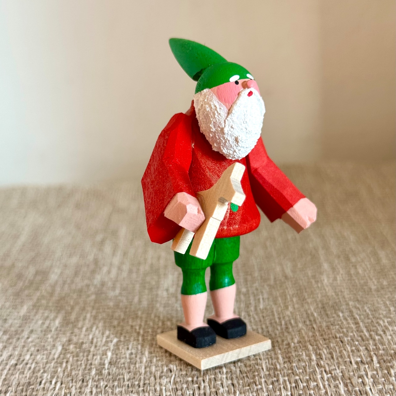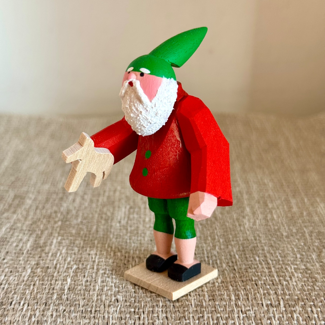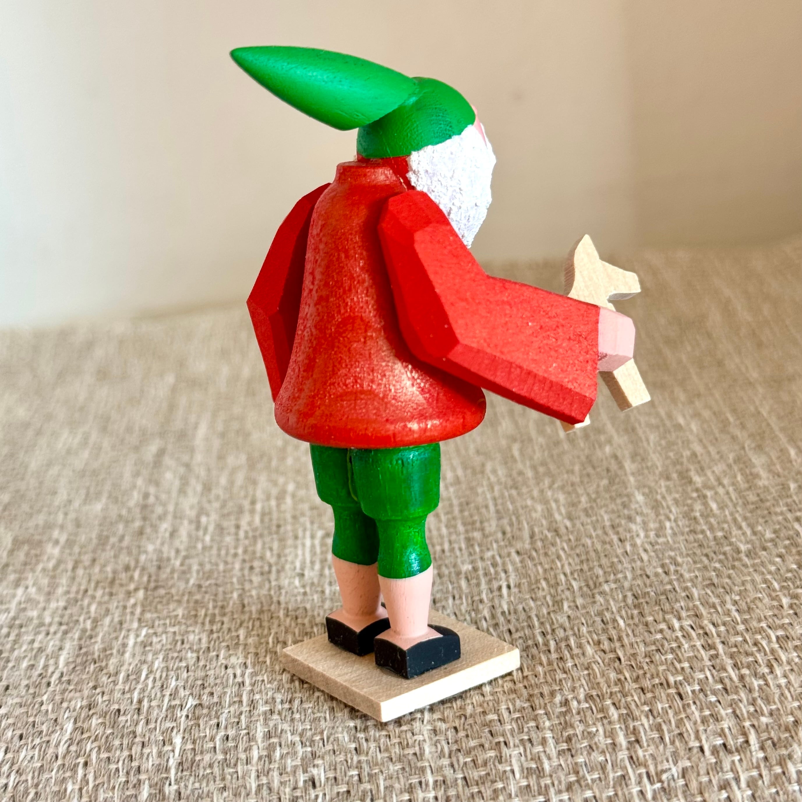 木ままやでも人気のベティーナフランケ工房 24人の小人アドベントシリーズです。 木工の馬のおもちゃを持っている小人です H8cm