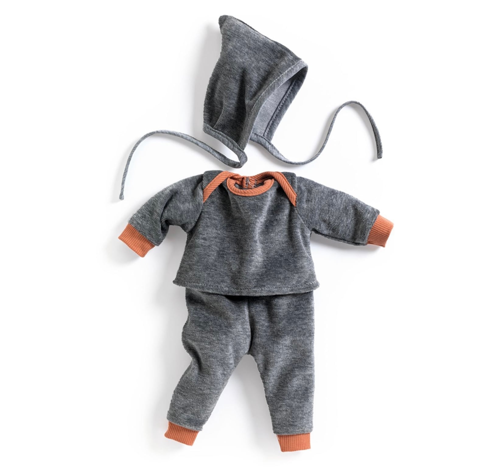 コットン100%のダブルガーゼ生地で、パンツ、長袖シャツ、ボンネットのセットです。