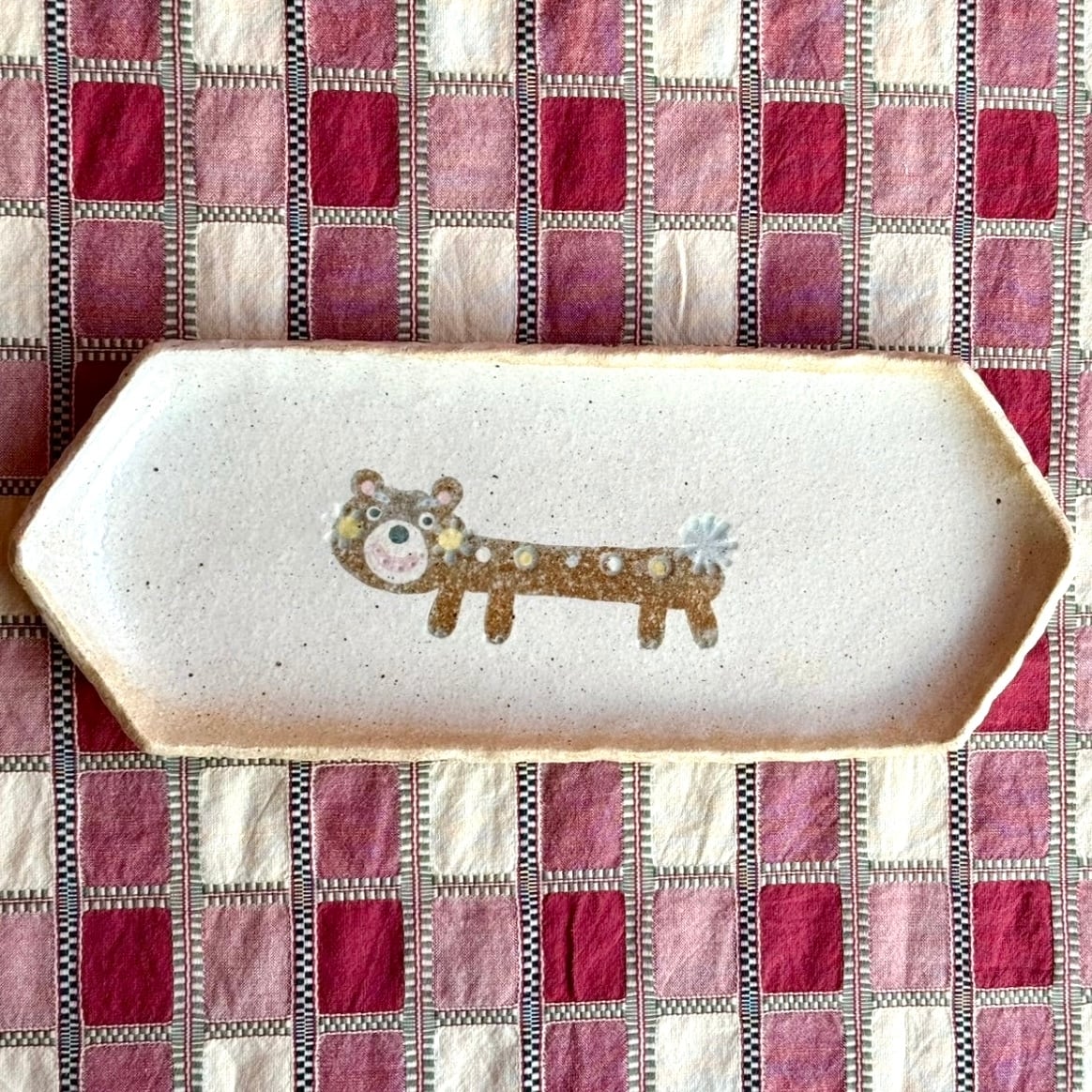 「練込絵」という土を練り込んだ技法で動物が描かれています。