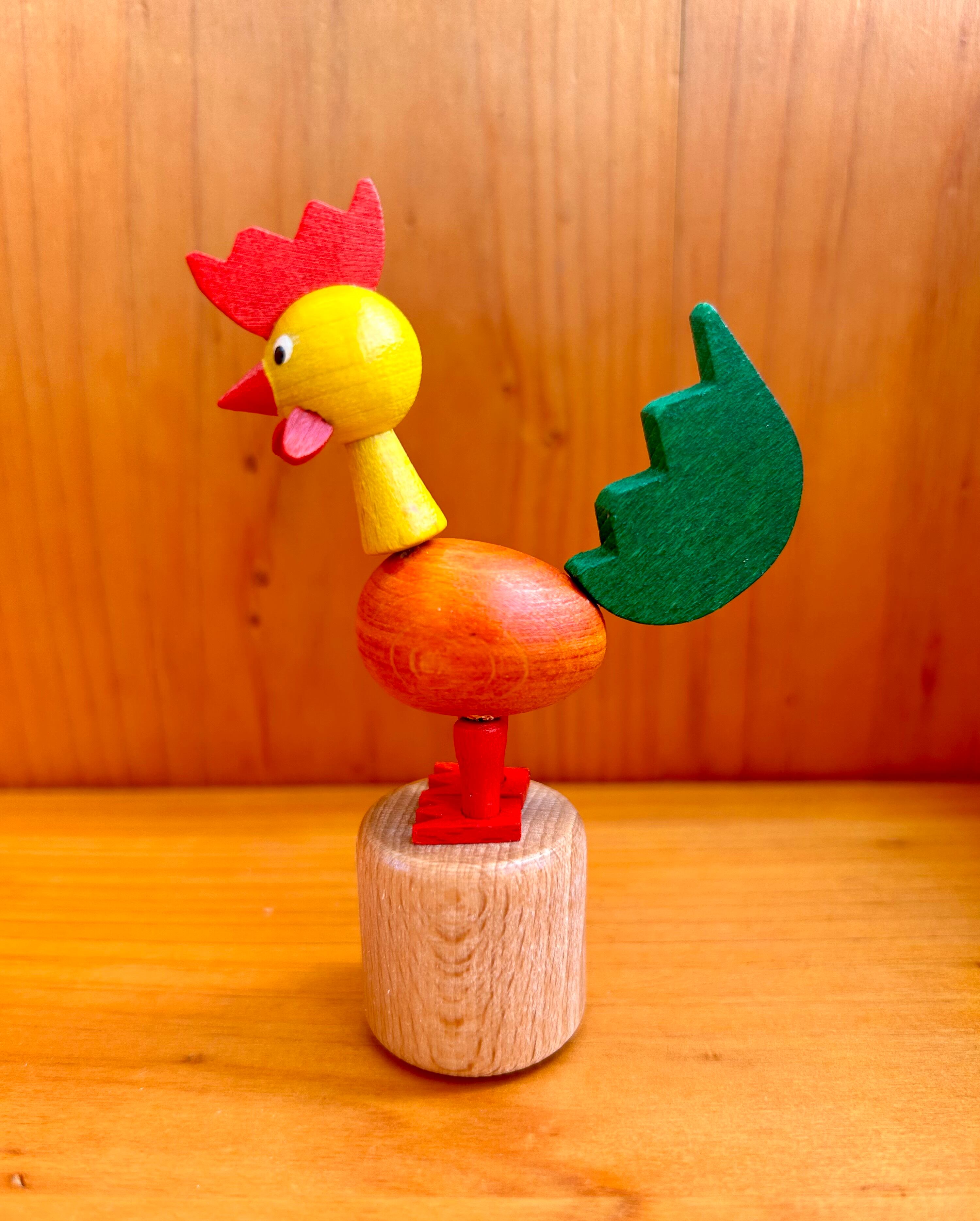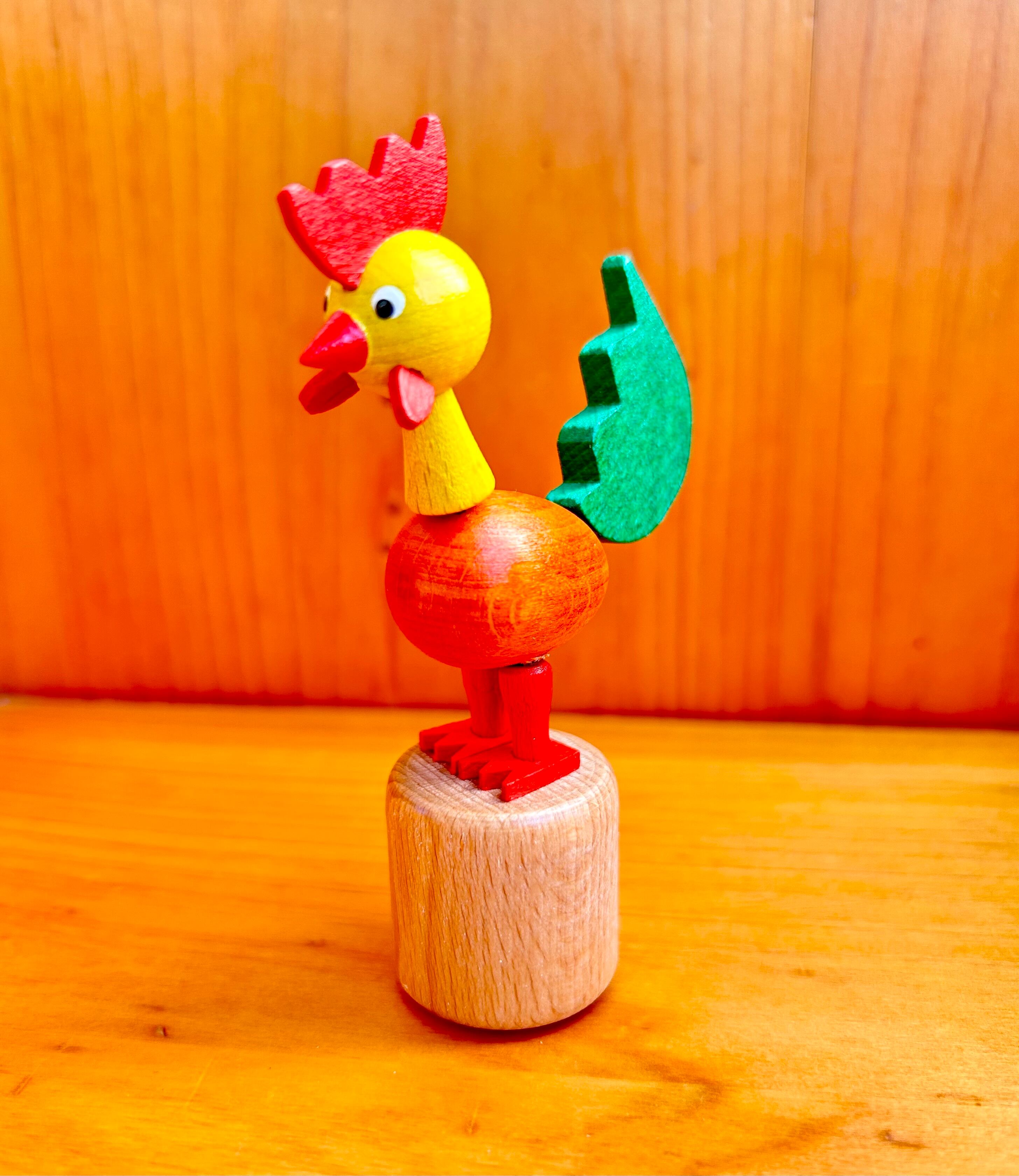 土台の底部分を指で押し上げると、クネっと人形が倒れます。