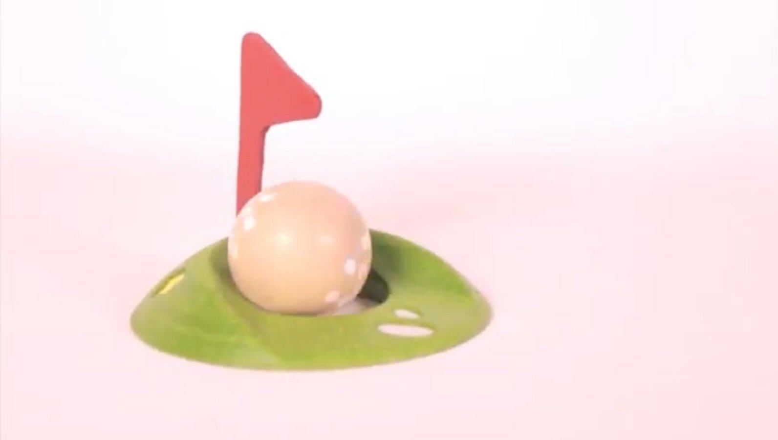 ミニゴルフセットには子ども用のクラブ2本、木製のボール2個、3種類のコースとホールが含まれます。