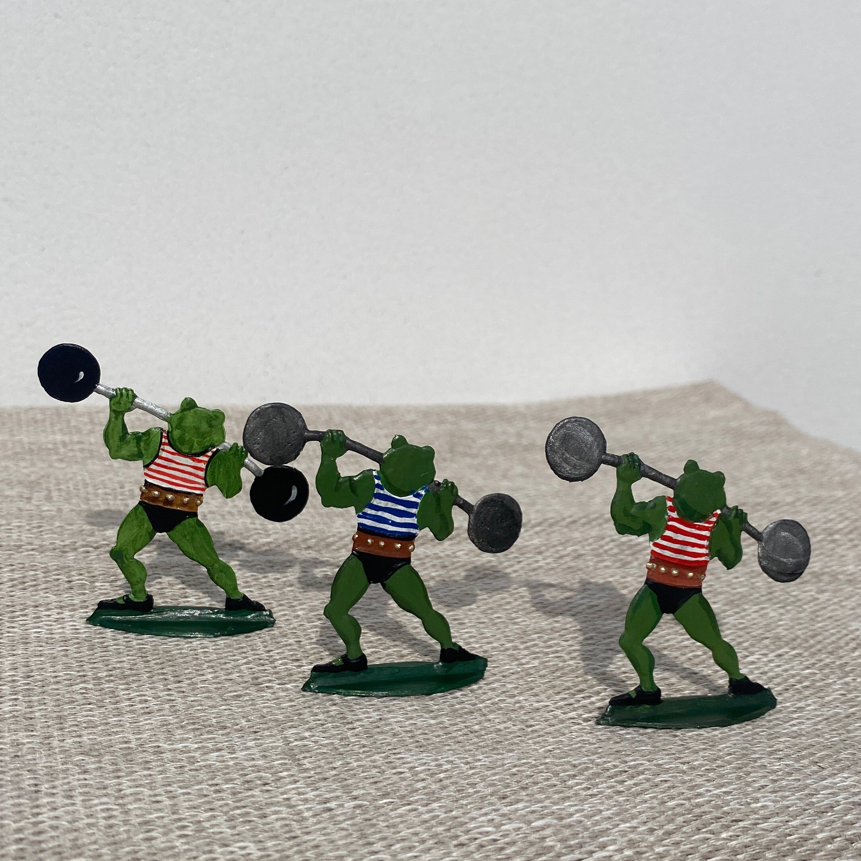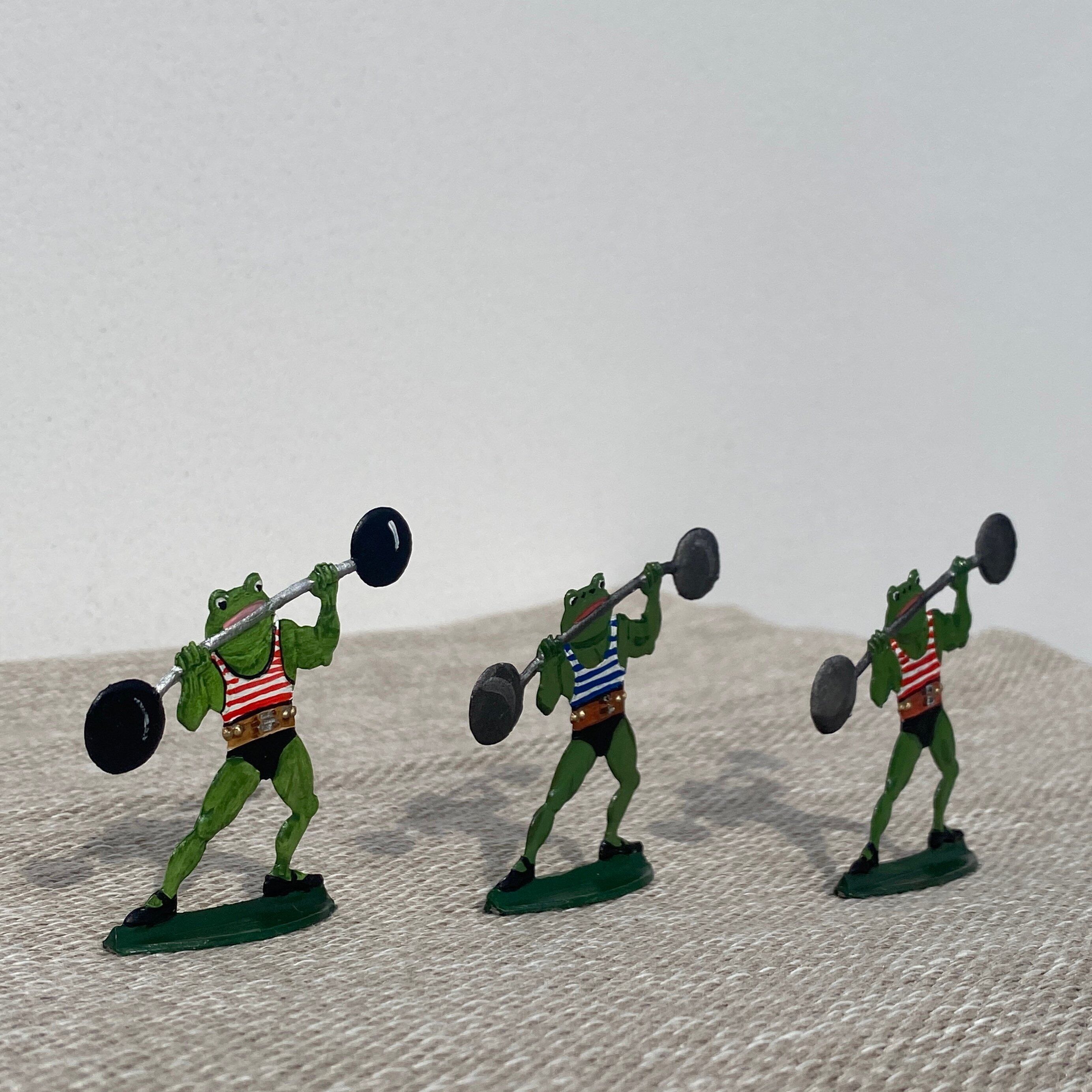 たくましいカエルさんがバーベルを上げる姿がキュート。