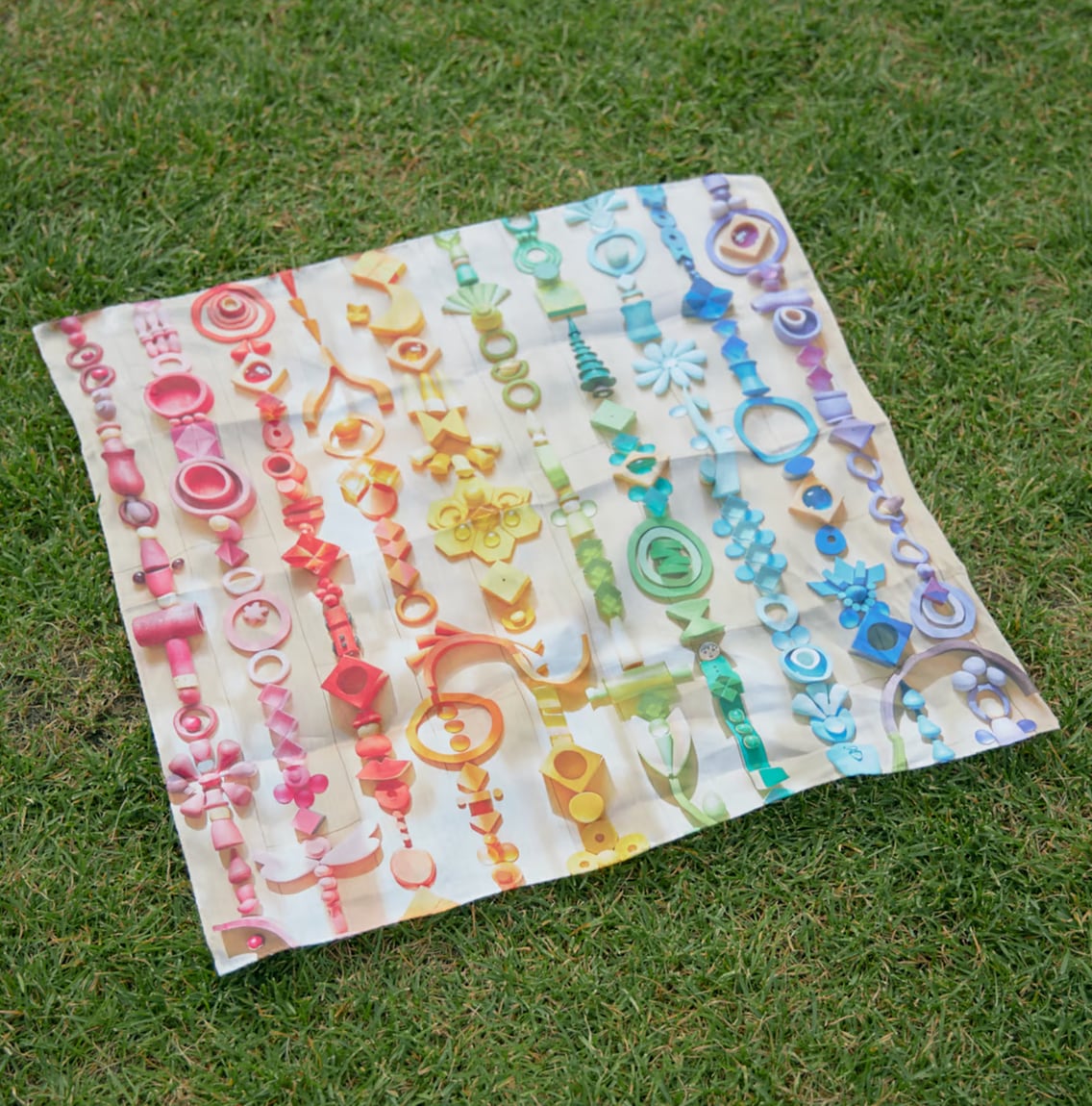 『積み木手帖 vol.3』発行記念として、表紙と同じ柄のマルチクロス(日本製)が完成しました。その名の通り、使い道はアイディア次第で無数。