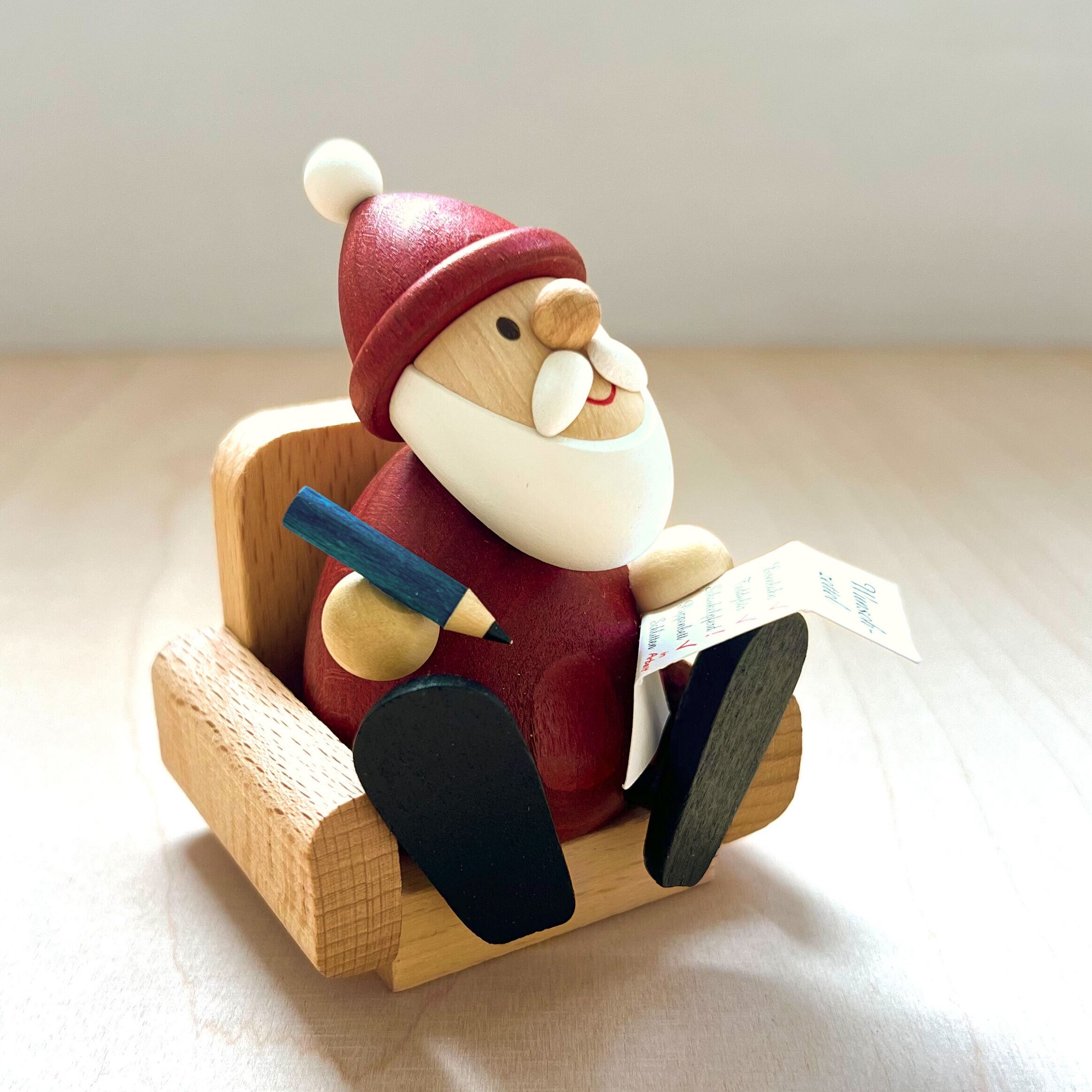 椅子に座ってプレゼントリストのチェックに忙しそうなサンタさんです。