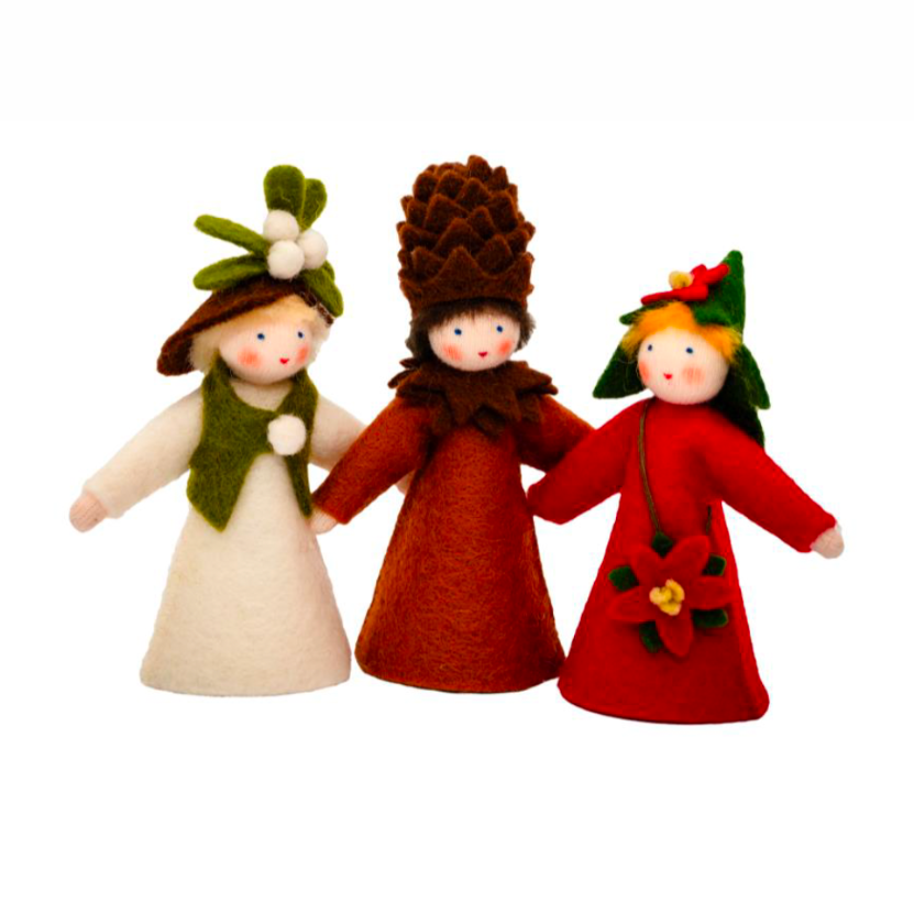 アンブロシウスの人形は、フェアトレードの羊毛フェルトからできたウォルドルフ人形。環境に優しい羊毛フェルトや再生紙、ワイヤーなどを用いて、一体一体手作りされています。顔の表情には、無害なテキスタイルペイントが使用されています。