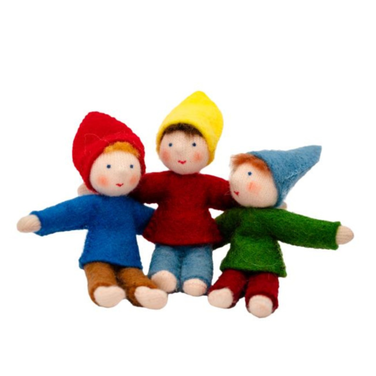 アンブロシウスの人形は、フェアトレードの羊毛フェルトからできたウォルドルフ人形。環境に優しい羊毛フェルトや再生紙、ワイヤーなどを用いて、一体一体手作りされています。顔の表情には、無害なテキスタイルペイントが使用されています。