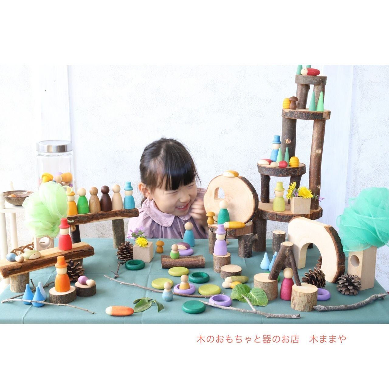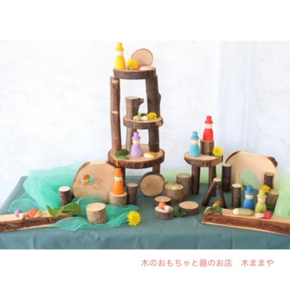 自然な風合いを活かした積み木。