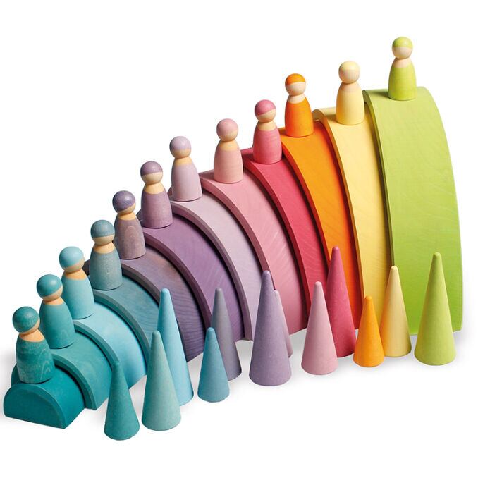 パステルカラーの美しいグラデーションだけでなく遊びの幅の広さも人気の秘密。半円盤と組み合わせればおうちのようにもなります。