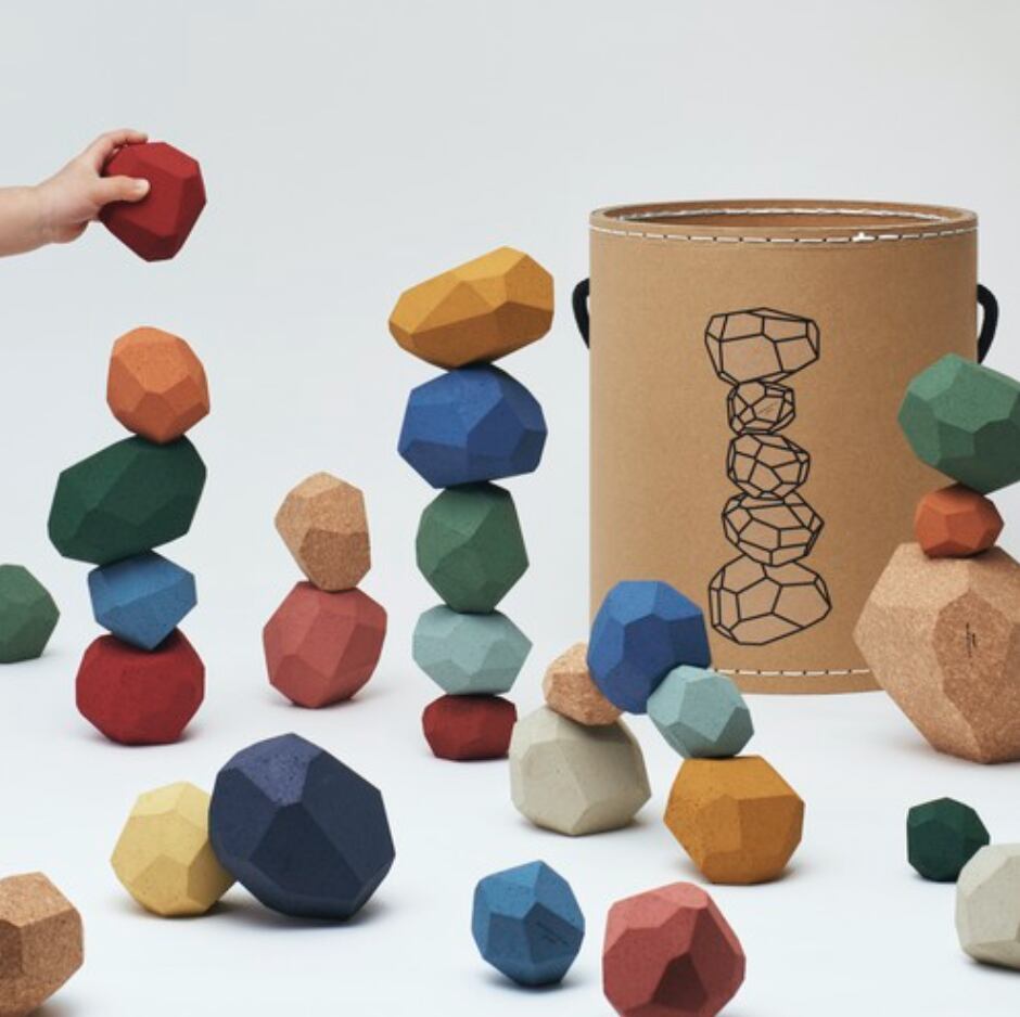 1〜5人で遊ぶことができるファミリーサイズ、持ち運びや片付けしやすい円筒ボックス付きです。コルクでしか作れない、特大サイズのブロックも入っています!