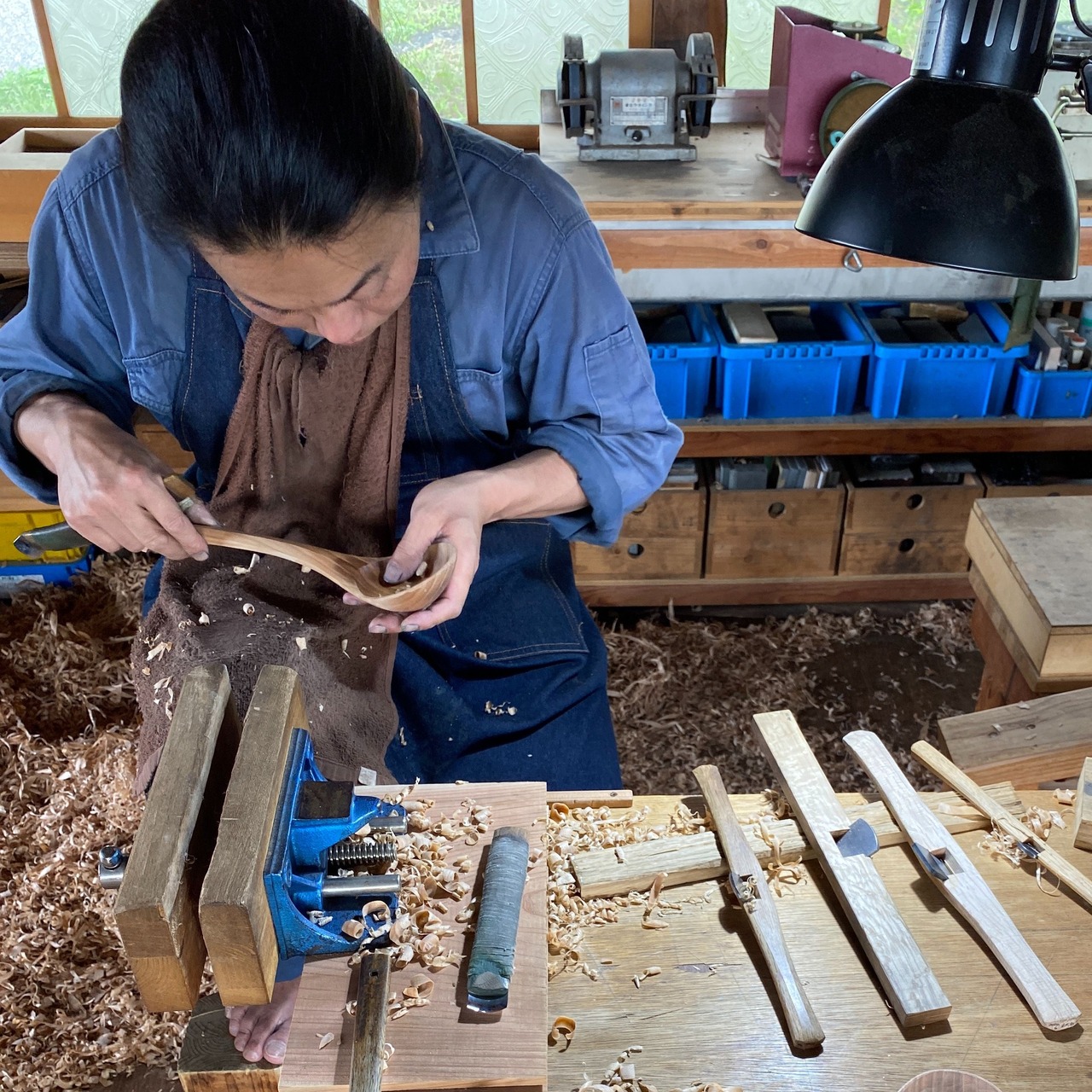 プロをはじめ使う人の声を聞き、使いやすさを追求し続けて辿りついた独特の形状は、何種類もの鉋を使って仕上げられており、木工職人大久保さんの代表作とも言えます。