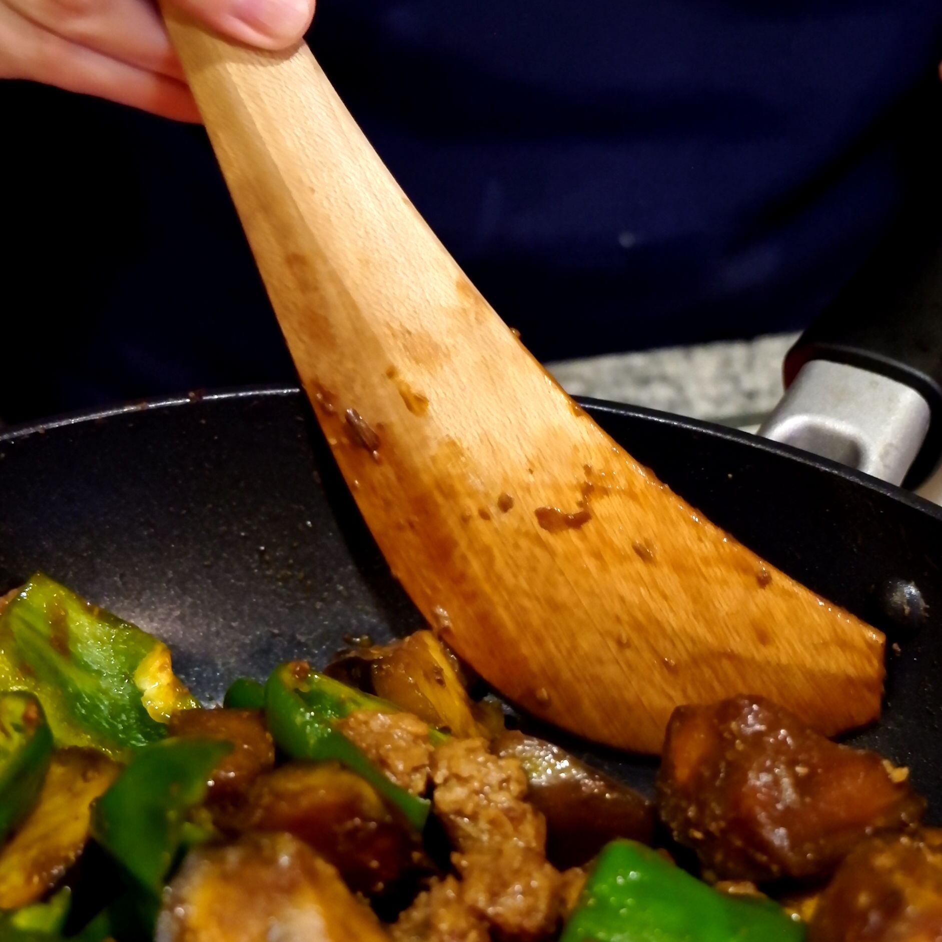 大久保ハウス木工舎の木のへらは炒め料理でその実力を発揮、その使い心地の良さに一度使ったらもう手放せなくなります。(もちろん炒め物以外でも大活躍!)