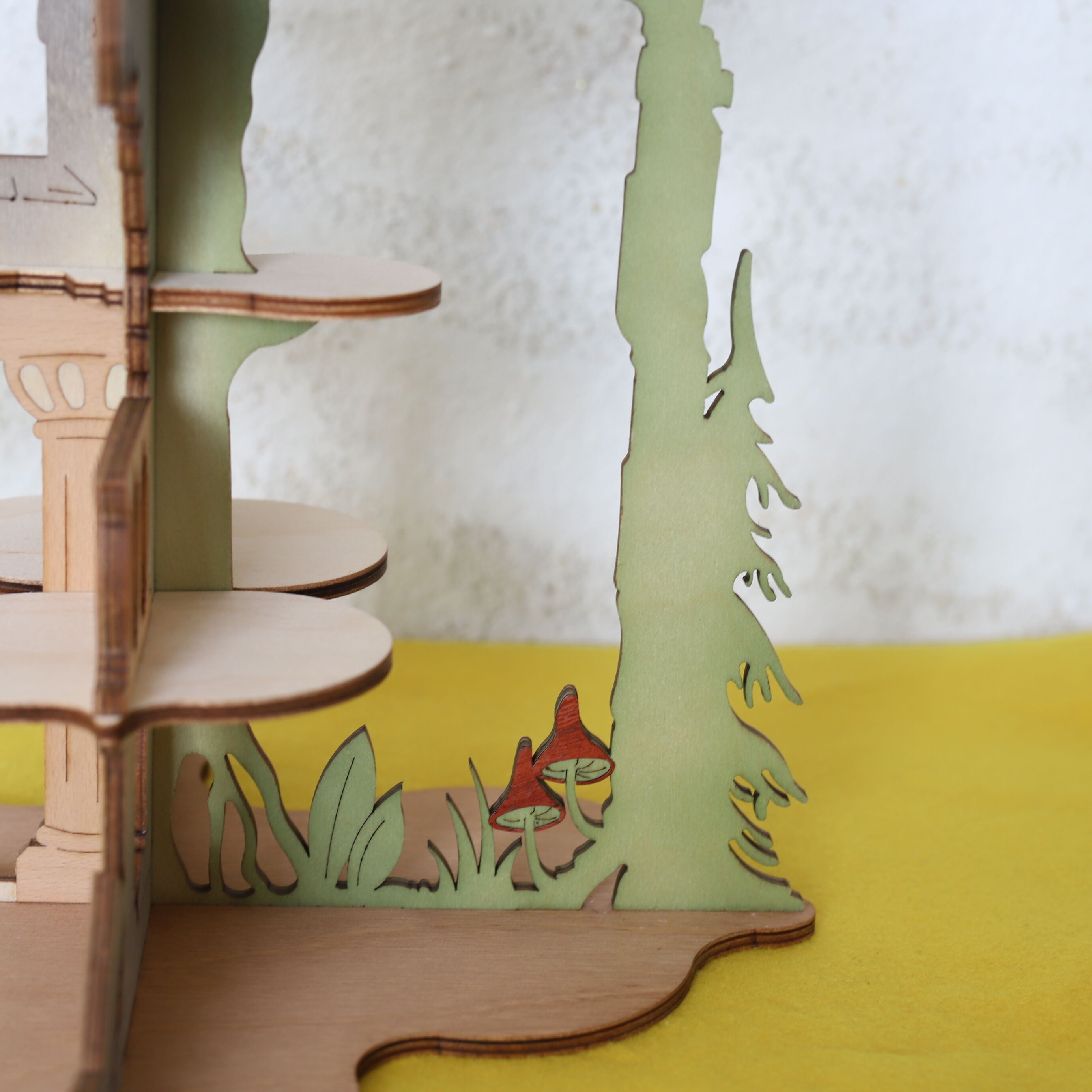 小さな人形や小物を飾るのに便利なツリーハウス。向きを変えることで、バリエーションもさらに広がります。