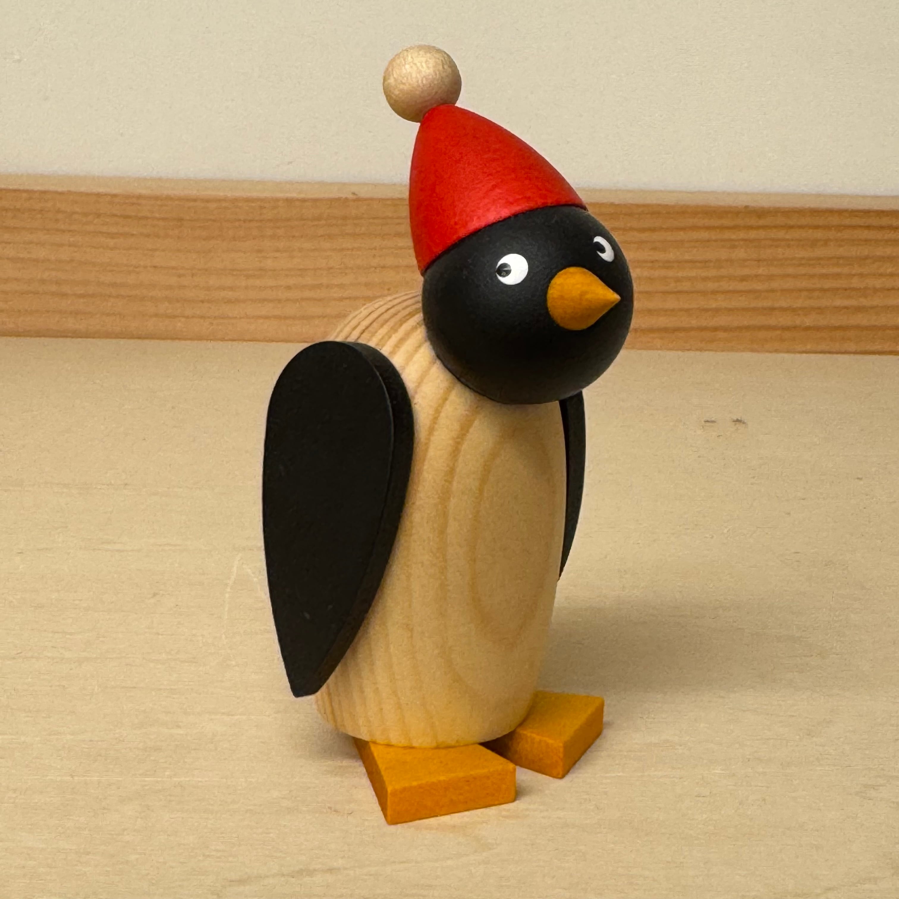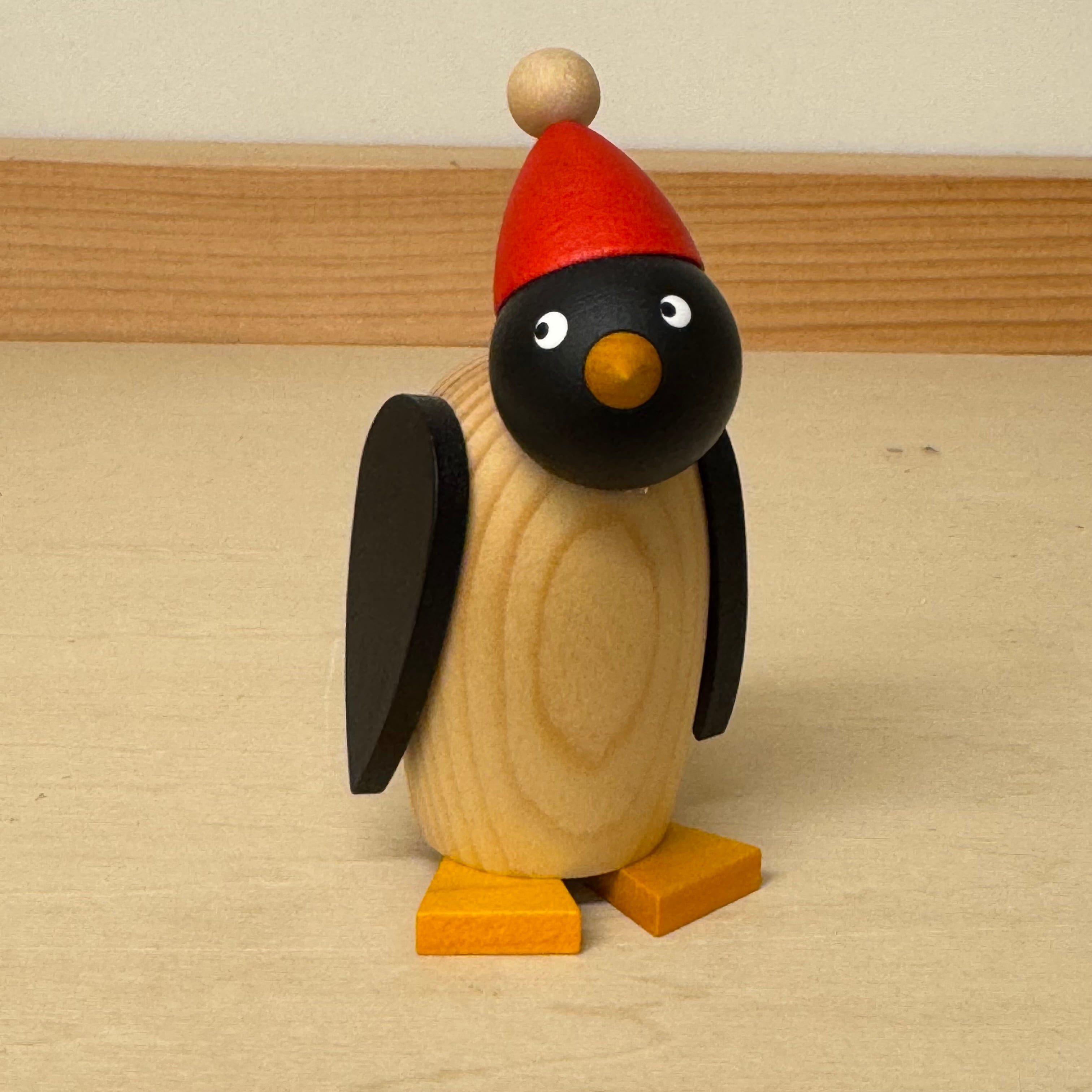 工房でも人気のペンギン、クリスマスにぴったりな赤い帽子を被って登場です。こちらは、大きなペンギンです。