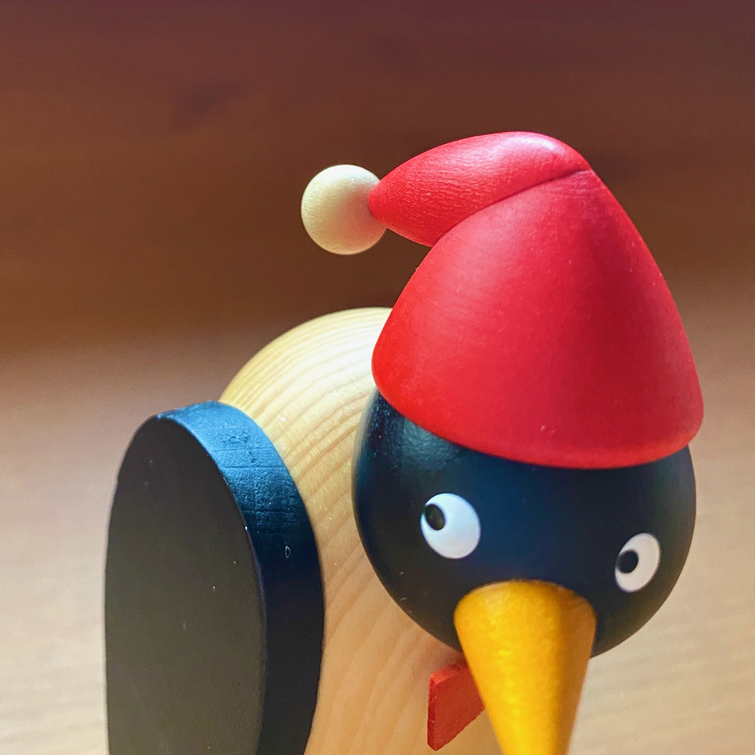 工房でも人気のペンギン、クリスマスにぴったりな赤い帽子を被って登場です。こちらは、大きなペンギンです。