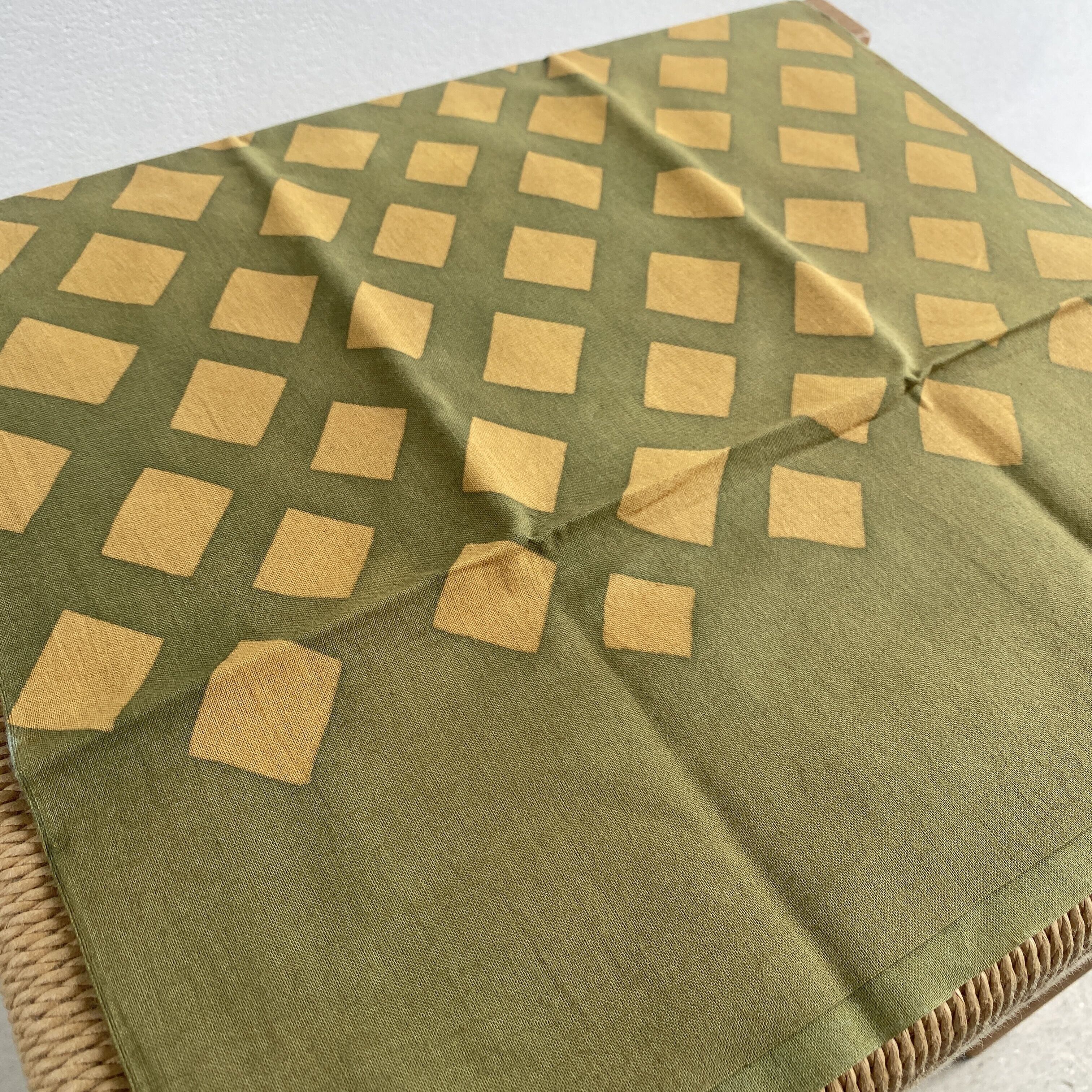 山内武志 型染め手ぬぐい 斜め格子 緑×金茶