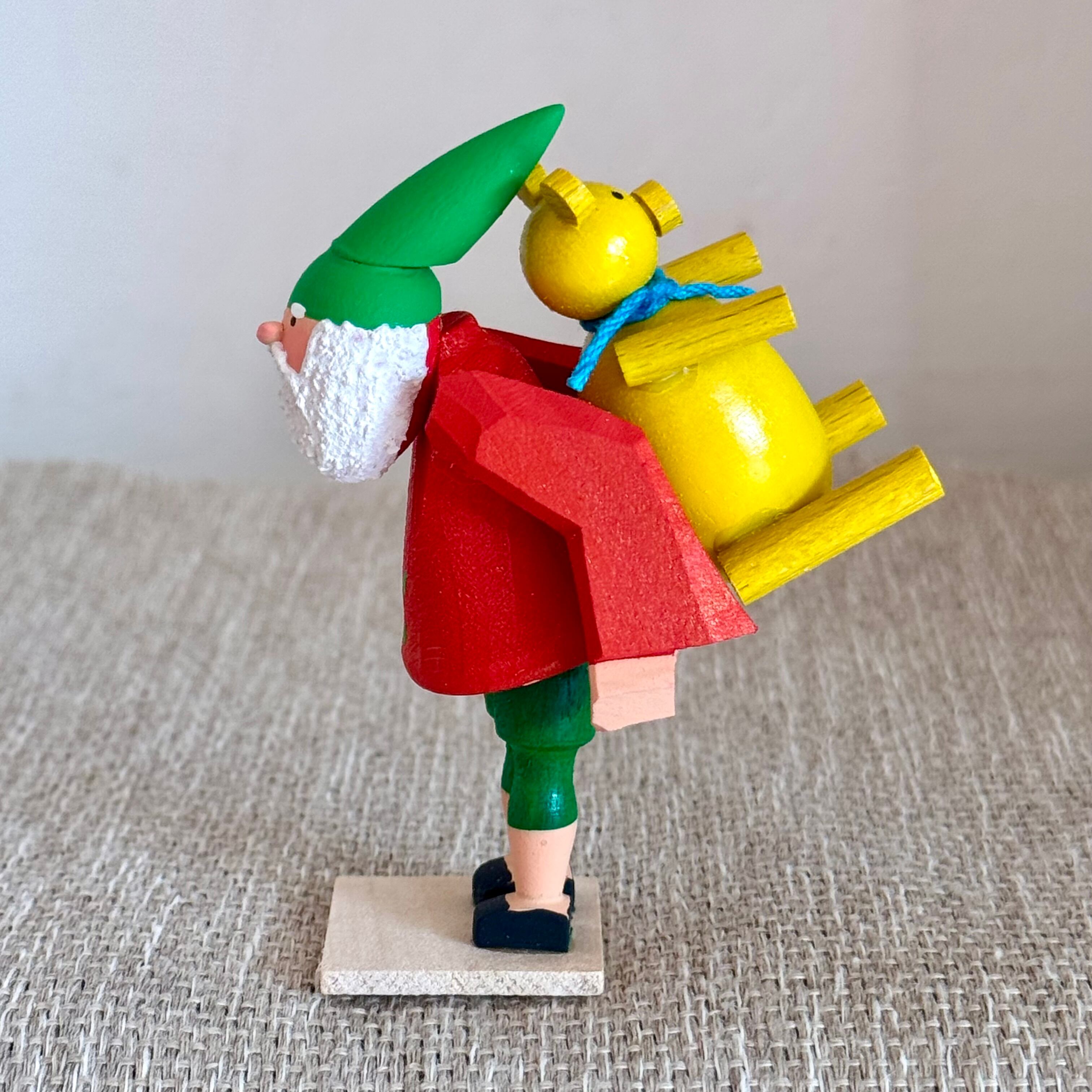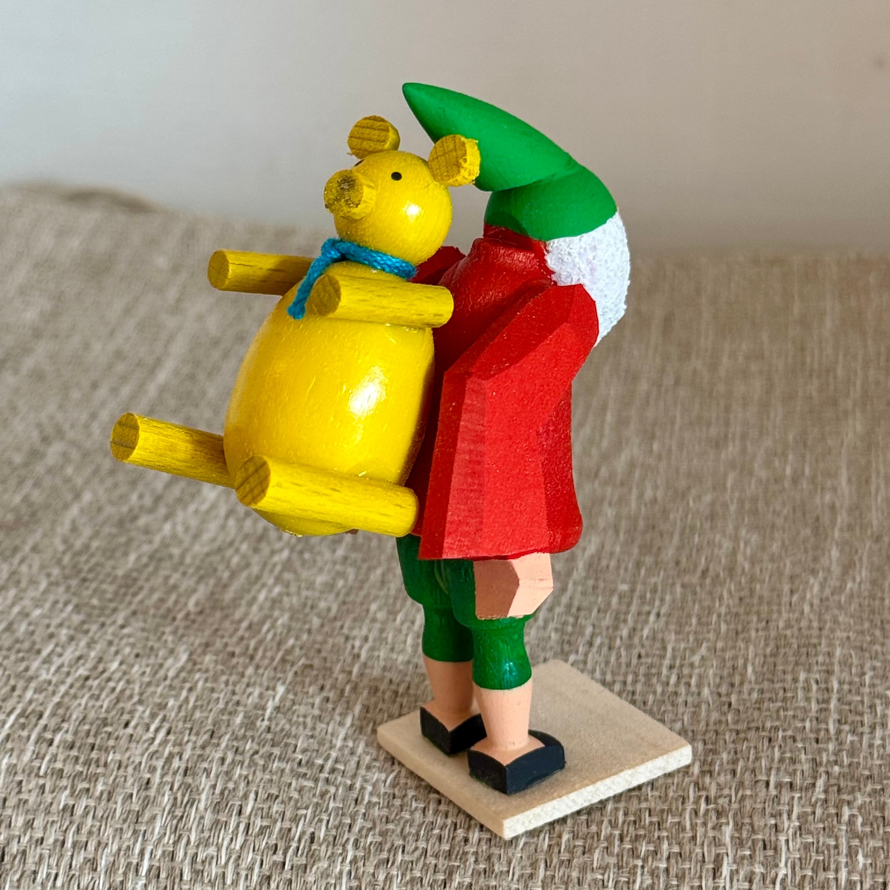 黄色のテディを背負った小人さん。クリスマスプレゼントかな?