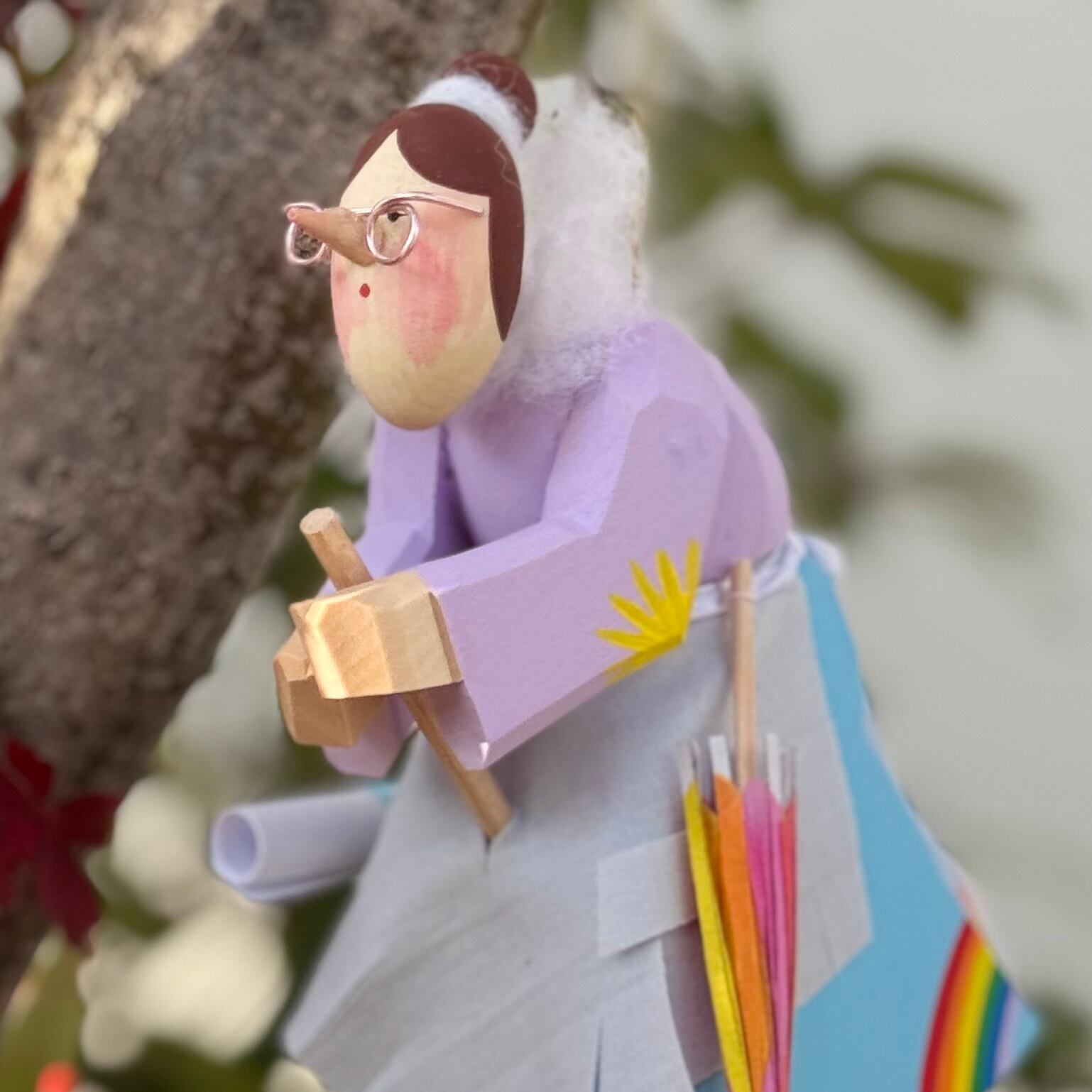 片側には太陽と虹、虹の傘。片側には雨、雪、雷。